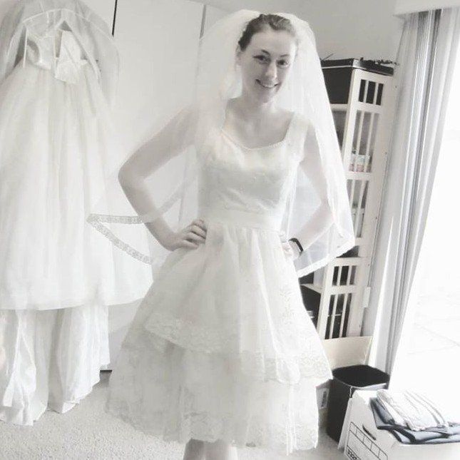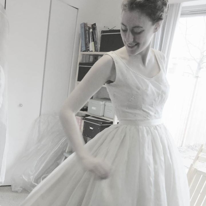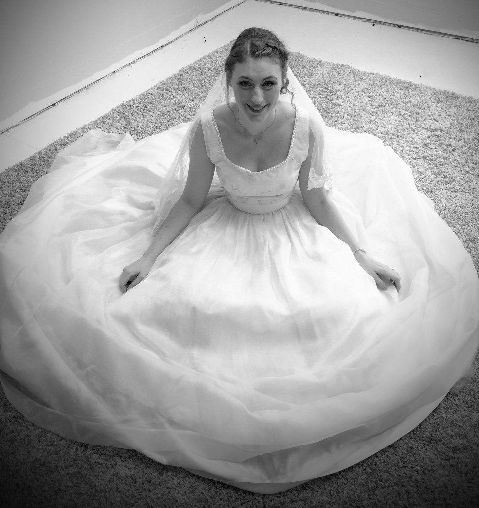redesigning Mom's vintage dress and combining with a tulle ballgown for two beautiful gowns in one